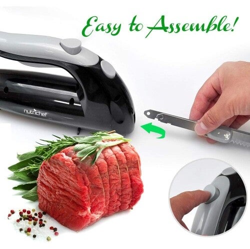 NutriChef Upgraded Premium Electric Knife - 8.9" Carving Knife, Serrated Blades, Lightweight, Ergonomic Design Easy Grip, Easy Blade Removal, Great For Thanksgiving